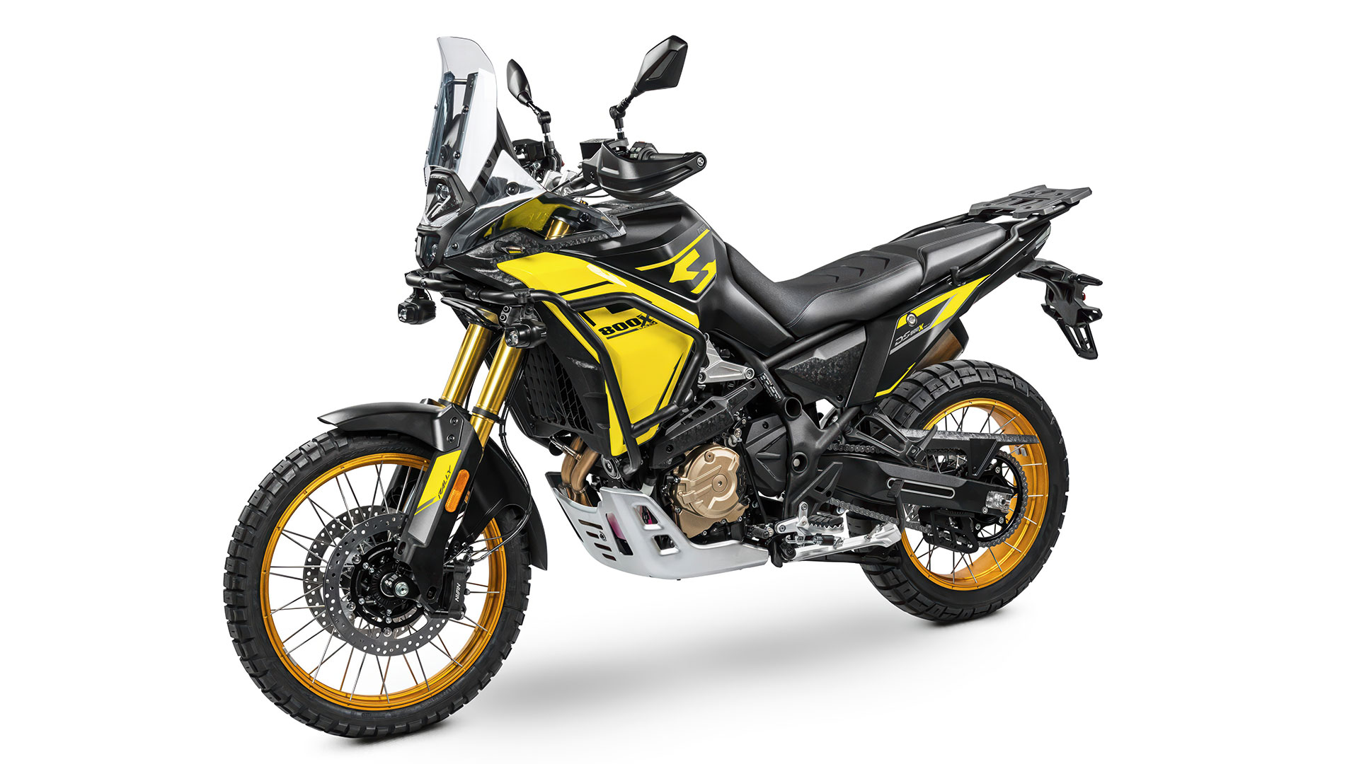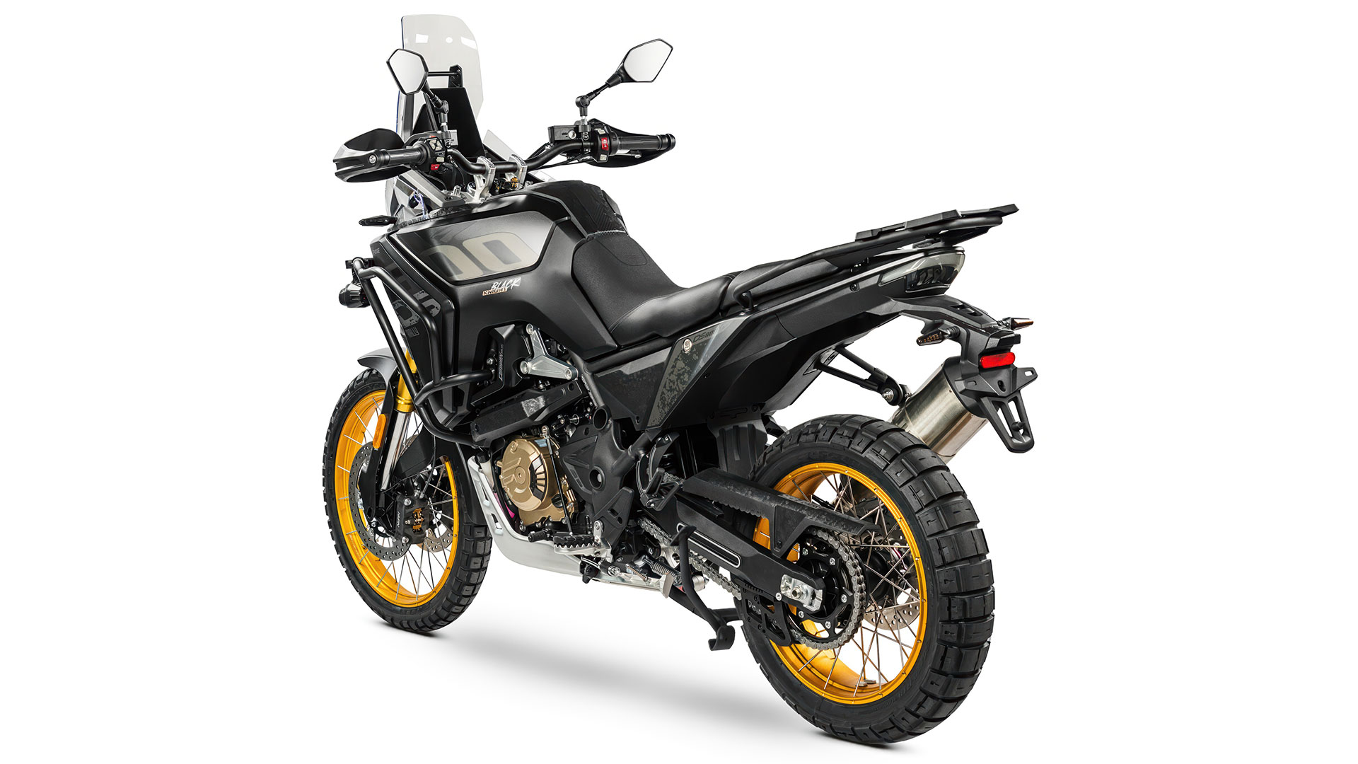Inspirerad av rallymotorcyklar ger den slanka linjen dig full rörelsefrihet. Sitthöjden på endast 850 mm och styret, monterat i justerbara klämmor, anpassar sig efter din kropp. Samtidigt ger den stora 24-liters bränsletanken och den genomtänkt utformade karossen den uthållighet och komfort du behöver – oavsett terräng och situation.