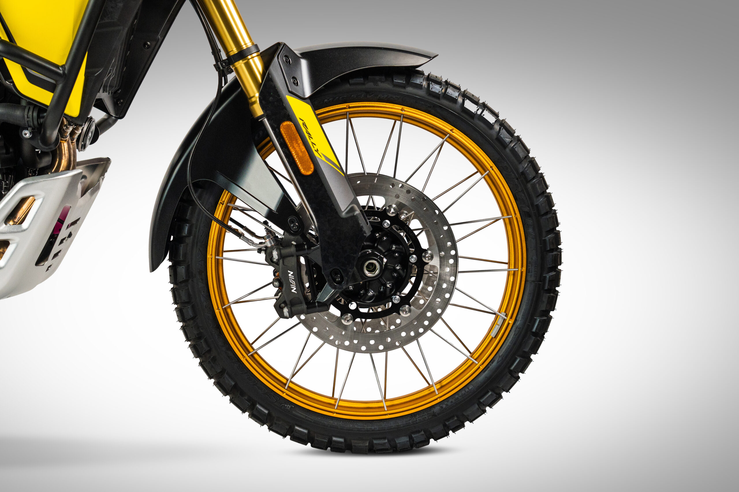 | Frambroms | Dubbla flytande skivor på 310 mm med radiella Nissin-bromsok med 4 kolvar. ABS urkopplingsbart |